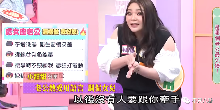 话说回来,小甜甜对老公的爆料,可能有部分节目效果在,但是,再为了节目效果,也不可能杜撰出老公在浴缸大便这样的情节吧?而且能感觉到小甜甜说到老公缺点的时候,是真的气到牙痒痒。
