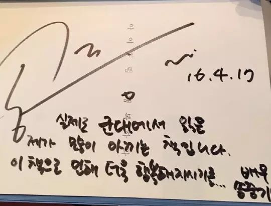 欧巴效应果然厉害,这位作家的书订单迅速增加,受到wuli太后粉的热烈追捧。本书作者为了表示感谢,亲笔写了一封信。“致宋仲基先生:因为您对《像孩子般幸福》的喜爱,差点儿就被遗忘的书里的孩子们才能够再次大笑着将幸福传递给世界上的人们。十分感谢您。希望宋仲基先生也能变得更幸福。”作家还准备亲自将书送过去给他。