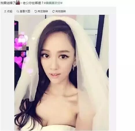 早在去年6月,她就在微博中晒出自己身披婚纱的美照,并配文向未来老公喊话