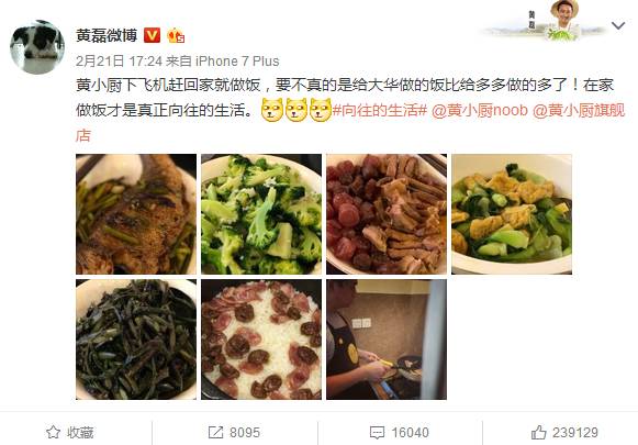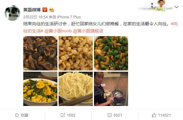 话说黄磊一定是演艺圈最爱下厨的男艺人啊,在《向往的生活》里做的饭还不够,回到家第一件事也是下厨,呃,孙莉真的太幸福啦~~
