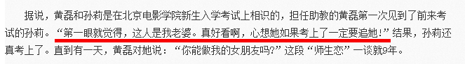 虽说大家都定义黄磊和孙莉是师生恋,因为当时孙莉参加北京电影学院新生入学考试的第一天,彼时还在读研究生担任助教的黄磊童鞋就对这位美女子一见钟情了~~