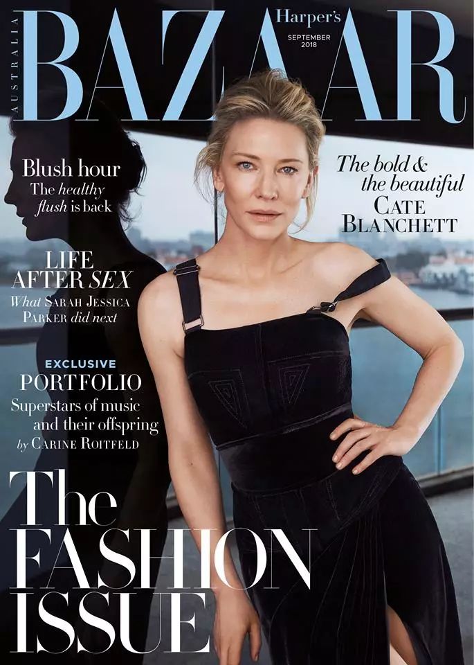 岁月留痕,气场犹在。身着Giorgio Armani2018秋冬系列Kate Blanchett一人独揽澳大利亚9月刊封面。