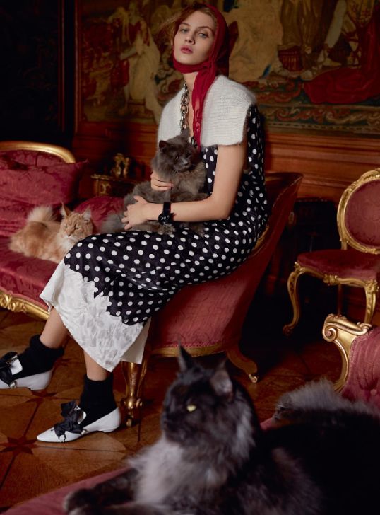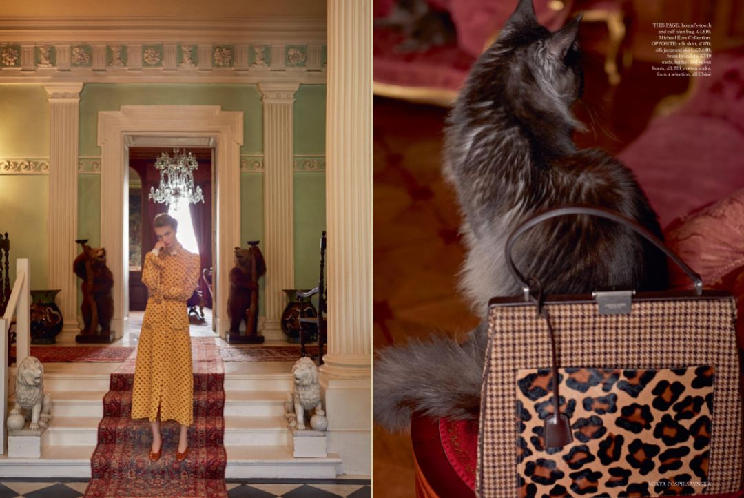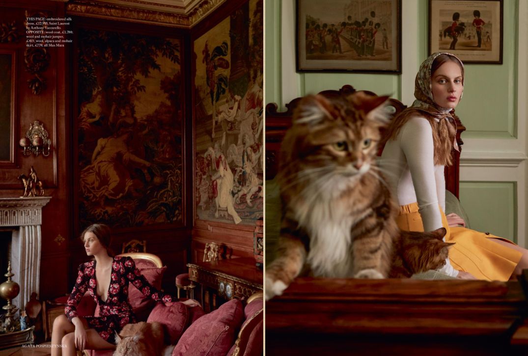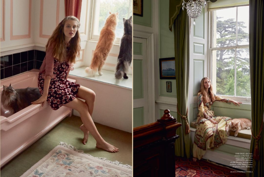 英版Bazaar在读者的印象中少不了田园、海岸线风光的取景,还有人与动物自然和谐的主题。在九月刊中摄影师Agata Pospieszynska拍摄了一组吸猫大片让猫奴们可以大饱眼福,超模 Florence Kosky 和缅因猫在复古住宅里的和谐友爱画面是爱猫人士不可错过的一组“CATWOMAN”时髦大片。