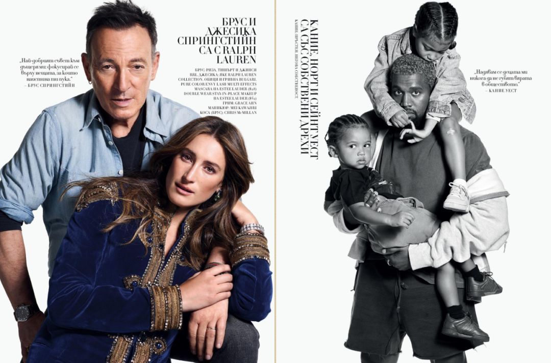 摇滚歌手Bruce Springsteen携爱女Jessica springsteen父女两人演绎封面故事,大片中同时收录两人之间的对谈。曾经获得过包括格莱美奖 ,两项金球奖和奥斯卡奖等20多个奖项的Bruce Springsteen是摇滚乐史上不可撼动的传奇人物,Bruce谈到她对女儿的唯一信条,而Jessica也谈到家庭、父女对于她的重要性。