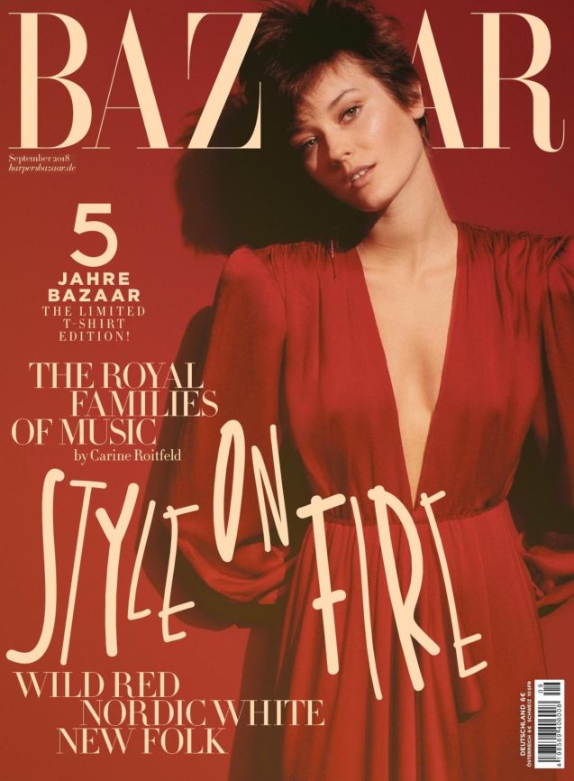 身穿Gucci红色连衣裙的超模Jac Jagaciak登上德国版《Harper’s Bazaar》九月刊封面,红色碎发的复古时髦女郎明媚动人。