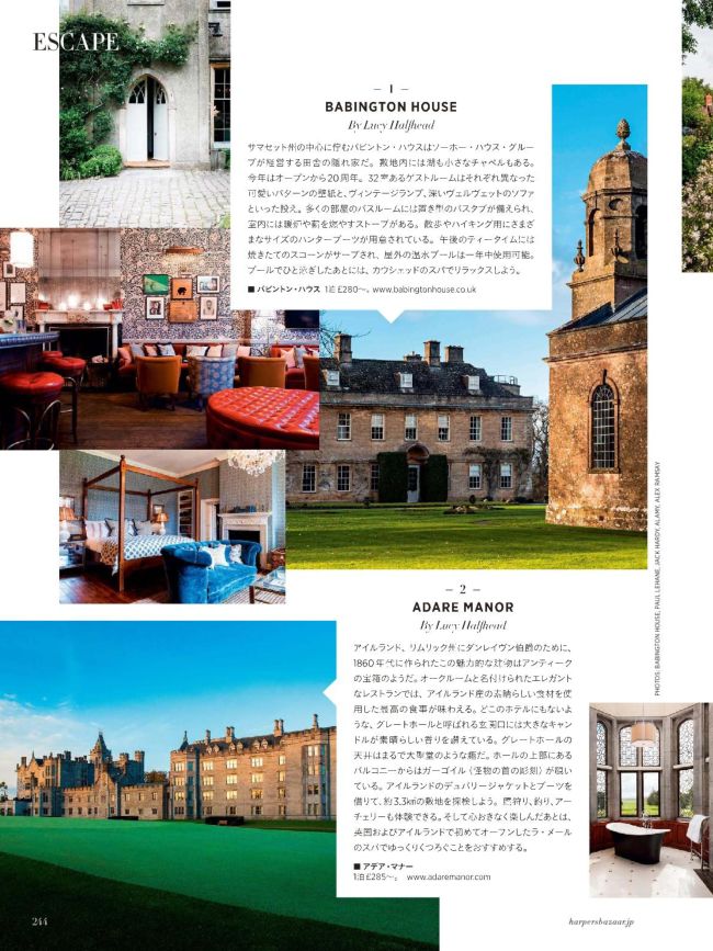 想想无关紧要的事和风花雪月吧,在感受完仲夏夜的海边热浪后我们即将步入秋季,日本版BAZAAR的旅行指南版块为我们盘点了整整10个诗意栖居的古堡花园。有爱尔兰的阿黛尔庄园、英国的宾顿庄园、弗里斯庄园等等,这里不但是你踏青与下午茶的理想之地,更重要的是,这些古堡花园全部可以作为度假酒店供人体验租住!