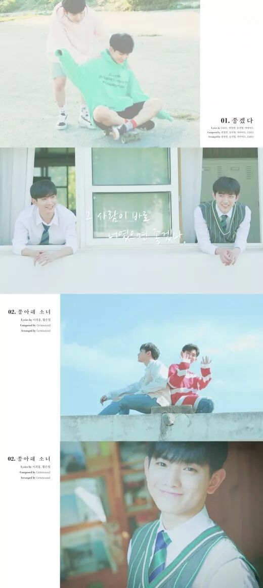 所属社关系者表示:“为了主打歌‘就好了’和收录曲‘喜欢你 少女’的抢先试听,追加公开了以‘青春’为主题的主题照片。主打曲“就好了”是在吉他旋律基础上的hip-pop的曲,让两位少年甜蜜的声线来发出耀眼的光”。
