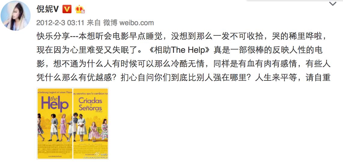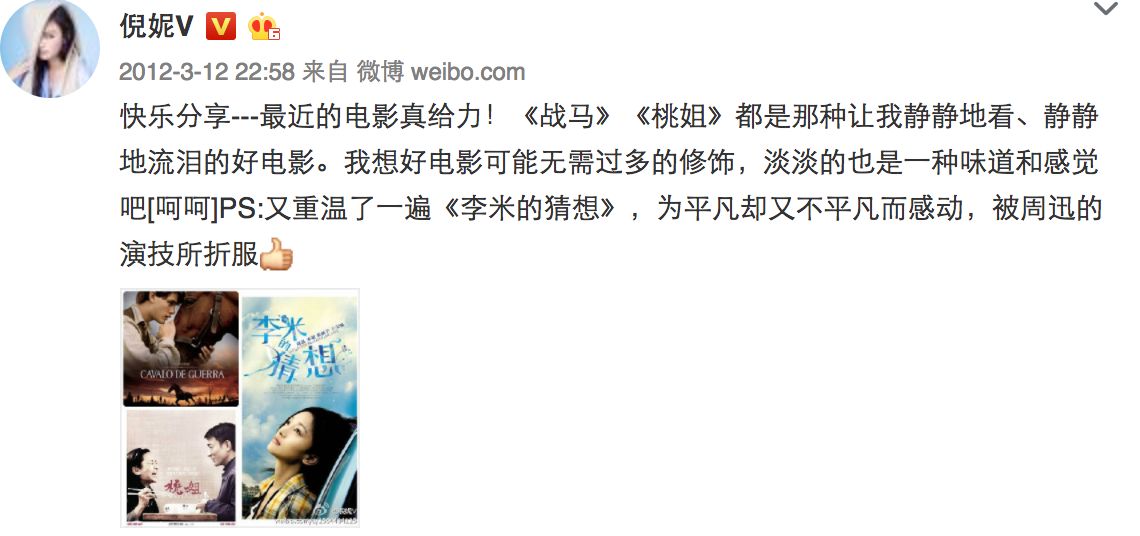 其实翻看倪妮早期的微博,就会发现,她写过大量影评。