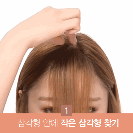 Step3:接着寻找一个从头顶开始的三角形,其余的头发别在耳后,一定要确认好是否对称;