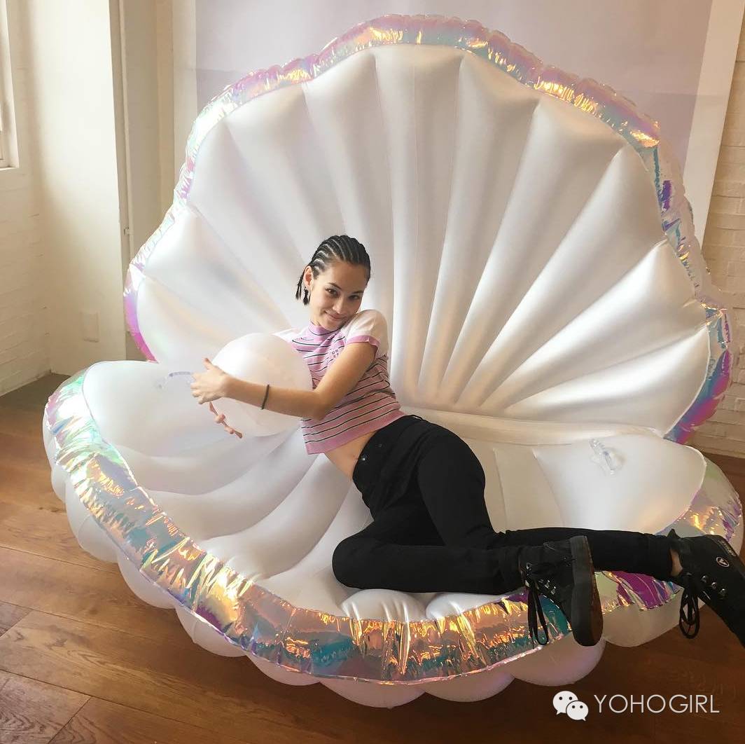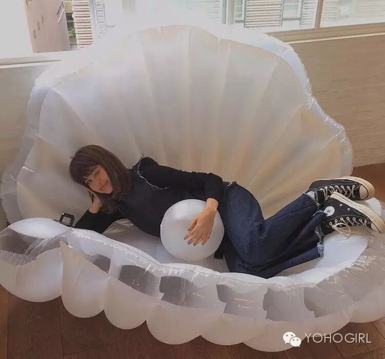 关于浮床,请一定要认着这款巨型珍珠蚌,由日本品牌Pucapuca推出,令一众日本红模都抢着当蚌精!