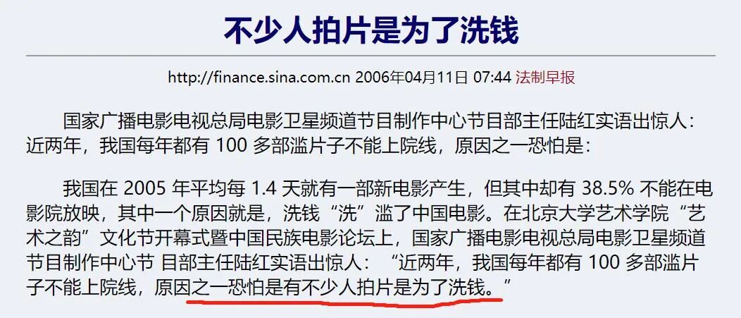 “我多次碰到过这样的投资人,他们说,我投1000万给你拍电影,其中200万是给你拍片用的,你要给我走出1000万的账目,剩下的几百万你要以票房或利润的名义返还给我。这就是电影洗钱的一种形式,是在和法律玩猫腻,我当然不敢做。”