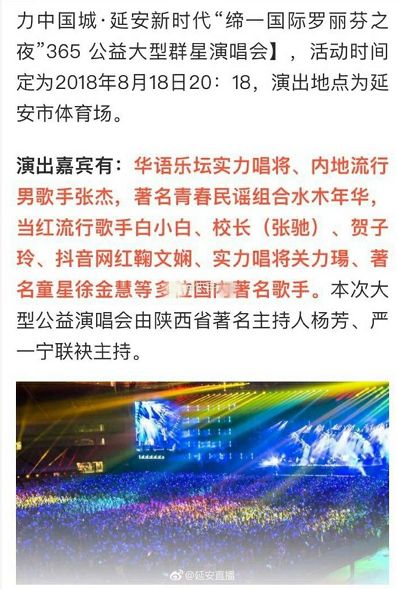 网友投稿称延安365公益即将举办的大型公益群星演唱会中白小白作为演出嘉宾出席,其他演出嘉宾有张杰、水木年华等国内著名歌手!白小白要和张杰他们同台演出,可以说是快.手平台网红歌手里一牛逼人物,你们期待他的演唱吗?