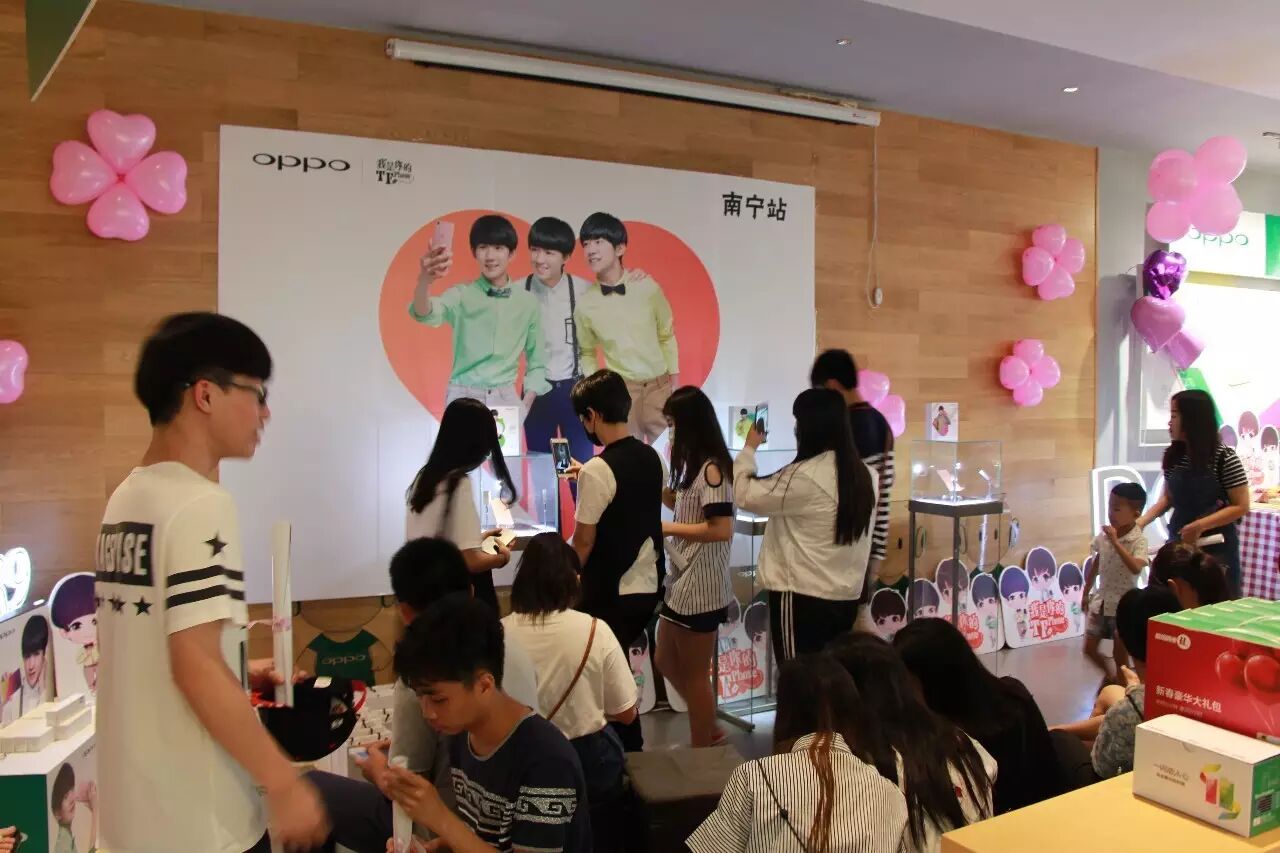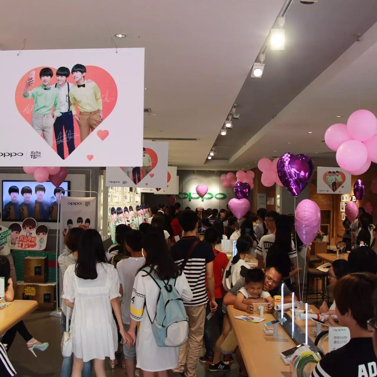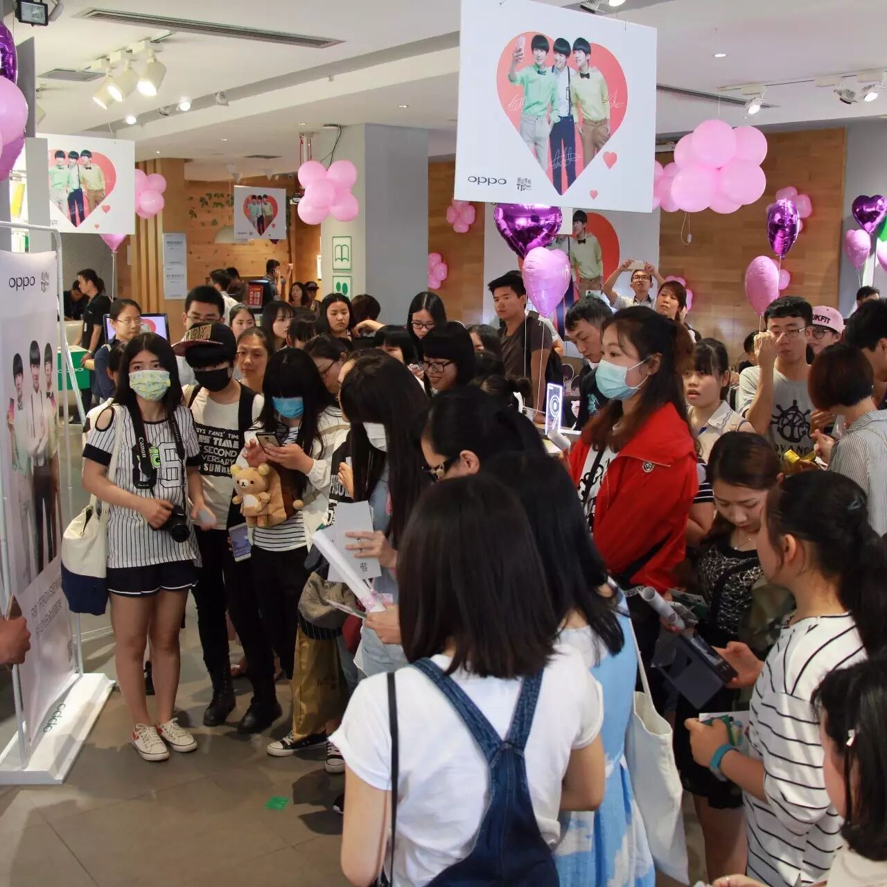 为了支持OPPO与TFBOYS的首次合作,为了抢到TF定制版OPPO R9,元气满满的粉丝更是一早就到达首销门店,“全副武装” ,满心期待,像是在参加一场美妙的约会。