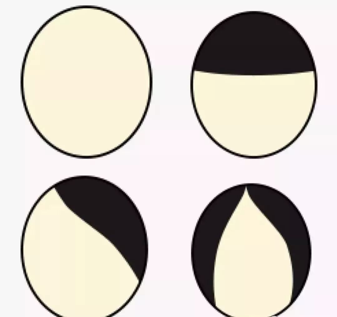 那怎样解决圆脸妹子的大脸困惑呢?看这边的发型攻略:圆脸造型重点在于视觉上拉长面部,打造出清晰的下巴轮廓。所以在做发型的时候适合4/6分和侧分,忌中分,尽量让头顶蓬松,两边的头发略微盖住脸庞。下面请欣赏灵魂画手画的四种不同刘海给人脸大小的感觉。
