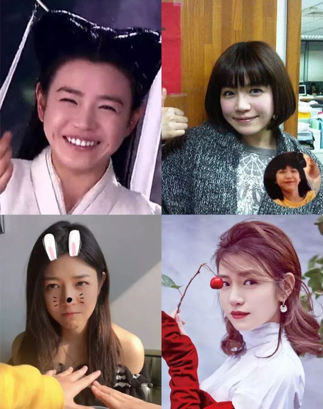 来看几种刘海对比图~明显斜刘海和带点空气感的刘海会比无刘海和齐刘海显脸小。
