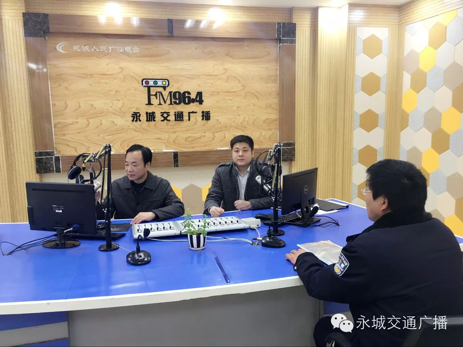 春节过后,大量外出务工人员开始陆续踏上返程的路途,为预防和减少中特大道路交通事故的发生,2月24日上午,交警大队副大队长宋晓波、事故科副科长李朝亮做客永城交通广播《一路畅通》节目,通过节目宣传道路交通安全法律法规,温馨提示广大群众出行安全。