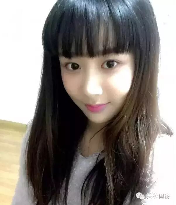 再来一个齐刘海黑长发,完全是一副乖乖的学生妹的样子!