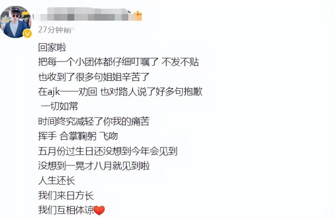 还跟路人说了很多句抱歉,来日方长,互相体谅。