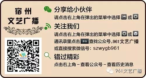 欢迎锁定收听FM96.1兆赫和97.1兆赫“宿州文艺广播”周一至周六早上7:30到下午15:00《点赞961》,点亮你的好心情!和我们一起互动吧!