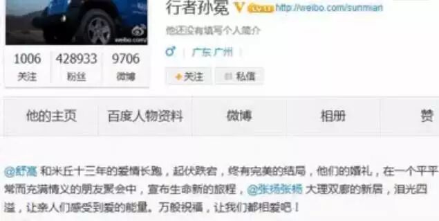 不过芒果台内部却流传着一个说法,不是别人插足舒高的婚姻,而是自己是小三。2012年,舒高和艺术家男友米丘结婚,好友在微博祝福的时候不小心透露了玄机。