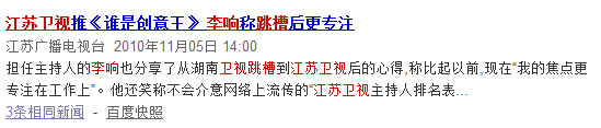 回过头来看看,不仅频传谢娜跳槽的新闻,身为芒果台一哥的何炅和汪涵也是如此。何炅被传出任某音乐公司的CEO,汪涵被传卸任了《天天向上》制片人之后,加盟了网综。