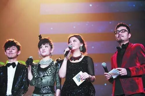 不但主持地位稳固,娱乐圈试水起点也很高。搭档五阿哥苏有朋合唱了《一路顺风》,与谢霆锋对戏出演《新扎师兄》,可谓红极一时,风光无限。