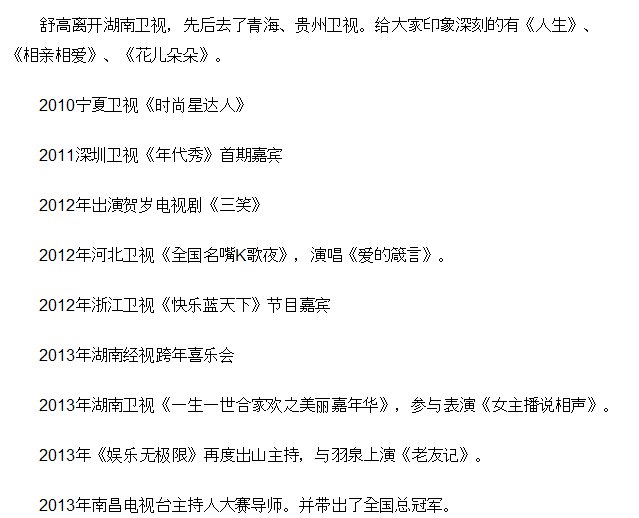 可就在自己事业如日中天的时候,舒高却宣布离开湖南台,至于原因,舒高本人当时给出的说法是去国外读研深造。