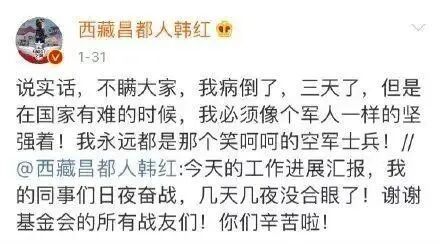 韩红消失一年后,生病、暴瘦、负面缠身,原来这才是她的真面目! VIKAN薇 内地女星 2021-02-03 18:30:45 712 创作不易,用心坚持,欢迎请BaGua喝几杯爱心咖啡!打赏并支持本文 打赏并删除本文 韩红,已经消失整整一年了。最近一次出现,是在腊八节当天,她和众多明星一起去扫大街,并给环卫工人们发放腊八粥。之前总有人觉得韩红慰问环卫工人是作秀,但是从2016年开始,韩红已经连续五年在腊八节当天去扫大街、慰问环卫工。韩红不光自己这样做,还会号召其他明星和志愿者一起参与这项活动。她常说自己的力量微不足道,但是能在全年中最冷的一天,代替环卫工人做一点点辛苦的工作也好。韩红总是如此,她没有什么偶像包袱,也不曾计较外界对自己的评论,只要是自己觉得正确的事情,就会认真去做,坚持到底。这样的韩红,却在过去的一年中,遭到太多非议,她重病、暴瘦、负面缠身,淡出公众视线。难能可贵的是,她不改做慈善的初心,依旧低调地为社会奉献自己的力量。△点击视频,走进韩红的内心世界在疫情出现的初期,因为人手紧缺,韩红曾经亲自连夜开车,把基金会募集的医疗物资送到鄂州。连续开车13个小时以后,她终于成功把物资送到湖北省内。但是在几天没合眼地配送物资后,韩红一下子没抗住超高强度的工作,卧病在床。在这个时候,有人质疑她为什么要亲自配送防疫物资,而不是选择把物资交给当地的慈善机构。这个问题,韩红很早之前就回答过。她曾经把好几百万捐给某某基金会,在扣除了许多管理费之后,他们居然把捐赠物资存放在自己的仓库里,而不是直接送往灾区。韩红对此非常不满,直接骂这种机构就是混蛋。后来她就选择自己亲力亲为,能第一时间把物资送到需要的地方就亲自送,绝不让中间人耽误时间。但是这样的举动,又被有心人抹黑为“沽名钓誉”,认为她事情没有做多少,却喜欢“作秀表演”。在疫情最严重的时期,更有人杜撰她贪污善款,将她和基金会一起举报。最后的结果当然不了了之。因为韩红不光每天都对基金会的资金使用情况公示,还请了专业的审计团队进行审计。韩红没有精力更没有时间去和那些安安稳稳缩在家里的“键盘侠”缠斗,她必须抓紧时间去调配物资,更快地解决问题。事实证明,那些对韩红进行污蔑的人,不过是一群见不得人好的小人而已。有人说,人性本善。但是更多人认为,没有天生善良的人,很多人的行为方式都受到自己人生际遇的影响。韩红就是这样一个人,生活给她苦涩,她却以甜蜜回馈。韩红原本出生在一个幸福的家庭,她的母亲是著名的歌唱家,一曲《北京的金山上》唱红了全国。韩红的父亲是相声演员,却在韩红6岁时在慰问演出时不幸牺牲。幼小的韩红在母亲改嫁之后就被送往北京的奶奶家。她懂事又听话,深得奶奶的疼爱。但是由于韩红的母亲经济不宽裕,很少给抚养费,韩红的奶奶只得置办了一辆小推车,每天带着小韩红卖冰棍。小韩红总是帮奶奶叫卖冰棍,胡同里的许多人都同情这一老一小,常常照顾他们的生意。除此之外,谁家有好吃的,也会主动送他们一份,让她们过得轻松一点。为此,奶奶总是教育韩红:世上还是好人多,你长大以后也要多多帮助别人!后来,韩红长大了,继承了妈妈的好嗓子。但是她相貌平平,歌舞团不要她,表演学院也不要她。为了让奶奶减轻负担,韩红参军了,她成了一名文艺兵,每个月的津贴不但能养活自己,还能养活奶奶。韩红以为奶奶会就此“退休”,不再卖冰棍。却不曾想,奶奶为了给她攒嫁妆,还是继续过着苦日子,用一根根冰棍为孙女存钱。这份嫁妆,最终也没能派上用场,却圆了韩红的歌星梦。由于当时没有人愿意包装韩红这种外形普通的明星,韩红又十分坚信自己的实力,她决定自己掏钱出一张专辑。当她把自己的决定告诉奶奶,奶奶拿出了这些年卖冰棍存下的所有的钱,两人把所有硬币加起来,凑了两万多,出版了韩红的第一张专辑。很快,韩红就凭着这一张专辑进入歌坛,慢慢走红。正当她准备让奶奶好好享清福时,奶奶却患病去世了。韩红沉浸在子欲养而亲不在的痛苦里,一度陷入抑郁。三年之后,她就决定走出来,如果没有人爱她,她就努力去爱别人。人的一生都在弥补自己的童年,有的人选择拼命索取,有的人以己度人,无私奉献。韩红就是后一种人,她没能得到父亲母亲的爱,就决定把自己的缺憾化为大爱,去关怀那些没人疼爱的孤儿。她收养了父母在缆车事故中丧命的2岁男孩潘子灏,又陆续助养了几百个孤儿,帮助他们解决生活困难。她在每一次灾难面前都第一时间冲出来,及时捐钱捐物,帮助灾区的人们。为了感谢参与慈善活动的朋友们,韩红可以流着泪下跪,感谢大家的善心。多年来,韩红低调地组织过各类慈善活动,每次活动结束后,她都会发长文感激每一位参与的朋友,不辜负他们的善意。1971年出生的韩红,今年已经50岁了。她没有爱人,没有爱情,没有存款,一无所有。但是她至今无悔,无惧非议,奋战到底。点个【在看】,为韩红的善良点赞!图片:本文图片来源于微博和网络,侵权请联系删除。作者:薇刊编辑部·马晴晴,文章首发于公众号:VIKAN薇(ID:kawa01)。薇刊,让千万女性看见美好。你的分享、点赞、在看就是对薇刊最好的鼓励 创作不易,用心坚持,欢迎请BaGua喝几杯爱心咖啡!打赏并支持本文 打赏并删除本文 感谢您的支持鼓励,我会继续努力的!文章地址:用