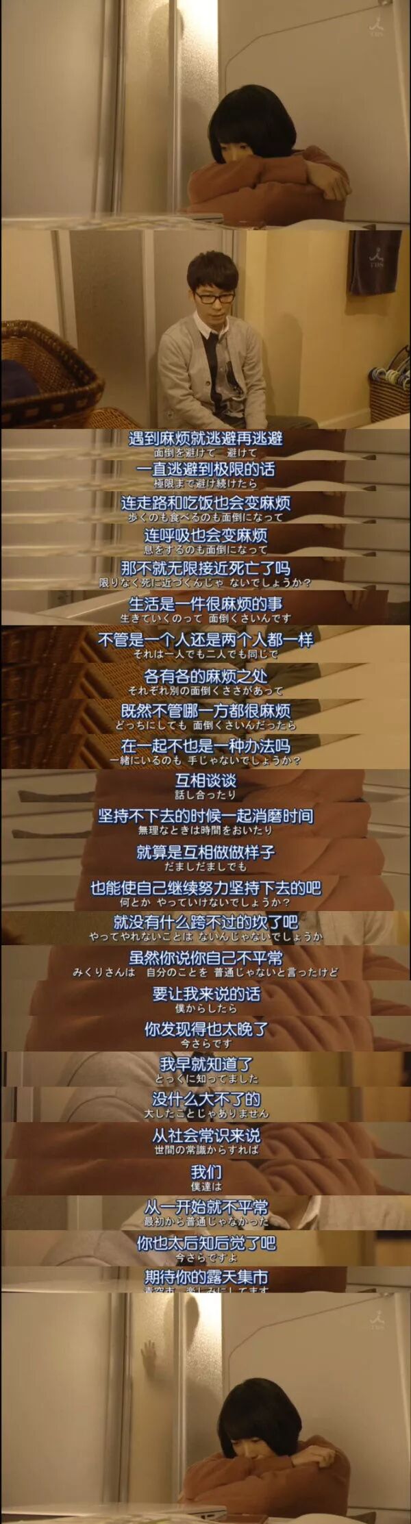 故事就是故事,我们到哪里去找一个温暖平和、善于反思的平框先生呢,码农们梦想中的家务超强,善解人意的gakki女神,现实中也很难找到吧。我们遇到的更多的,还是那些本就平常,却会影响着你人生轨迹的小事情,也许我们之前会一直逃避,但是,从今天开始,正视问题,不要逃避!