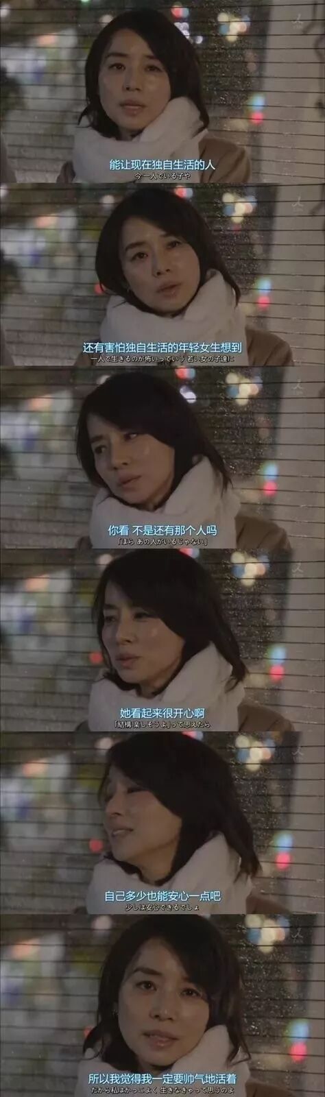 这样的她多么潇洒,有着自己的事业,不依附男人而过活,坚持自己的想法,有追求。可是在风见对她说“请不要说那种话”之后,她夺眶而出的眼泪,突然间的脆弱,无不诉说着这样“潇洒”的背后又有着多少辛酸与委屈,在这样一个对着女性有着过多强行赋予的价值的社会中,在周围人异样的眼光与刻薄的言语中,这样坚持自己的困难与委屈可想而知。可她不但做到了,而且活得这样精彩纷呈,这样恣意潇洒,这样优雅从容。最后风间和百合酱在一起了,我真的超开心哇!