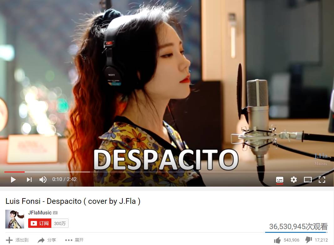 韩国歌手J.Fla的录音棚翻唱版本,凭借甜美声线收获3600万次点击。