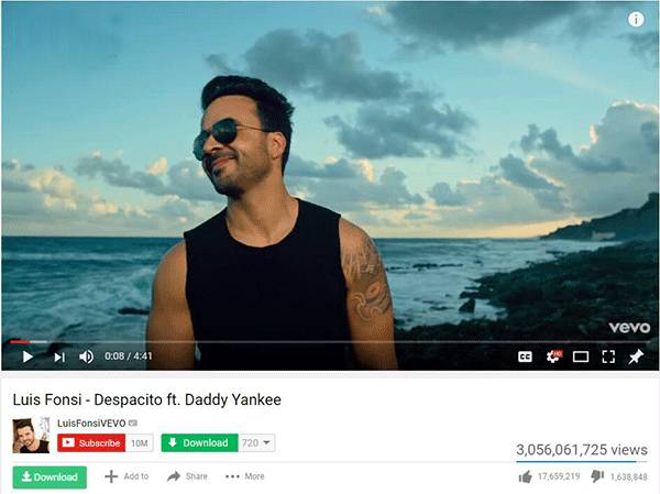 而所有这些都是在流媒体和社交媒体的催化下发生的。像Spotify和Youtube这样的全球化平台,可以让不同地区的人们在同一时间访问同一首歌曲,透过流媒体消费娱乐产品已渐趋主流,《Despacito》歌曲MV取得如此数据,也是消费方式在助燃。