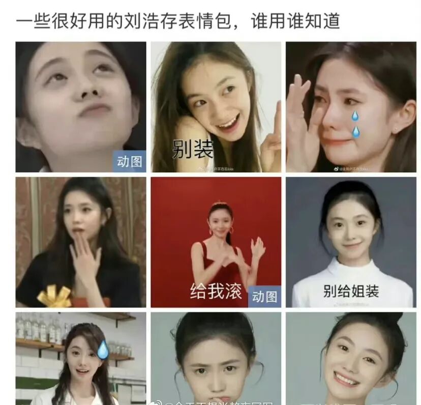 最成功的营销就是借力打力、顺从民意的同时达到自己想要的东西。这才是高端的营销、洗白。由于这段时间大家吐槽刘浩存,都吐槽出圈儿了、成了只要是玩手机的人就耳熟能详的梗了。对此,虽然刘浩存本人很不满意,但是她团队很专业、嗅觉灵敏到马上就意识到这是一个很好的营销机会。所以洗白动作马上就来了。她团队顺从民意,马上就做出了很多刘浩存的表情包。
