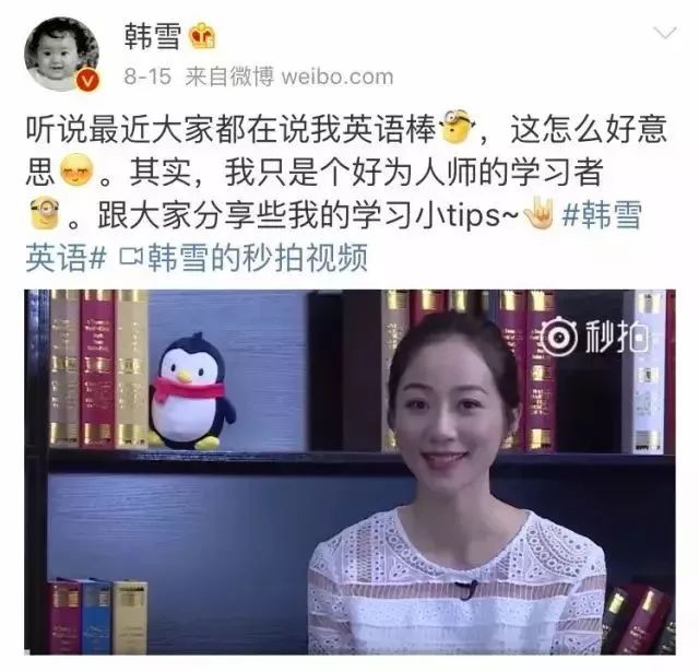 最近韩雪在微博上po 出了自己学习英语的心得,被网友夸赞人美声音甜,说的比英语专业的还6~