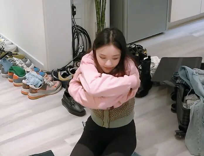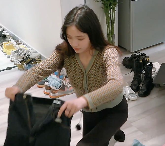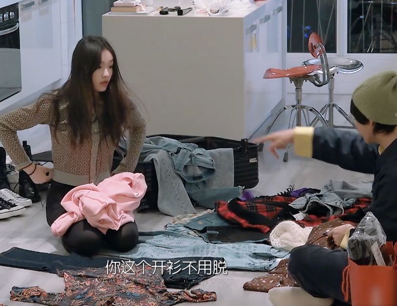 韩火火帮林允把衣服搭成一套,之后让她试,原以为她会拿着衣服到房间里边躲避镜头,但没想到林允直接坐在地上,就开始把外套脱掉,当着镜头的面完美没有觉得不妥,还让大家挺意外的,完全不顾及自己女明星的形象,非常的随意。