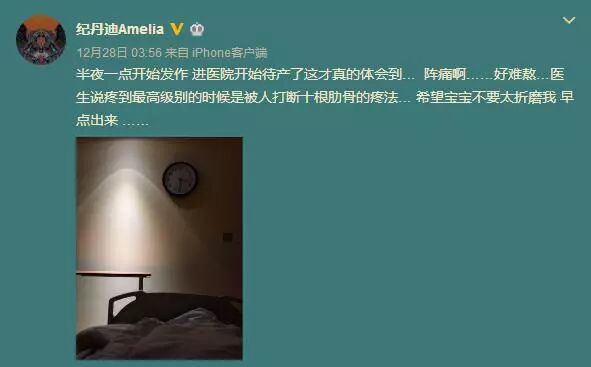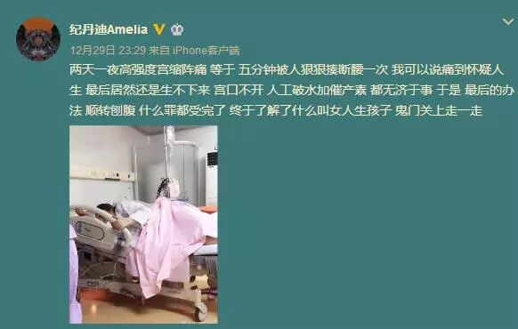 生孩子到底有多痛,我们可以从纪敏佳微博中的记录再一次感受到:“ 两天一夜高强度宫缩阵痛 等于五分钟被人狠狠揍断腰一次 我可以说痛到怀疑人生 最后居然还是生不下来 宫口不开 人工破水加催产素 都无济于事 于是 最后的办法 顺转刨腹 什么罪都受完了 终于了解了什么叫女人生孩子 鬼门关上走一走。 ”