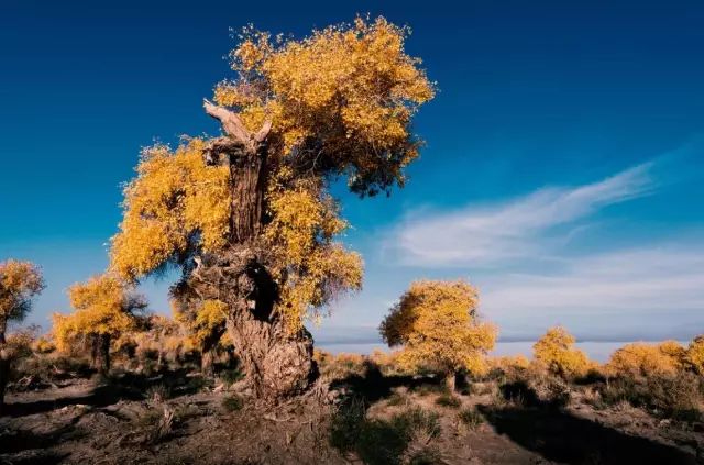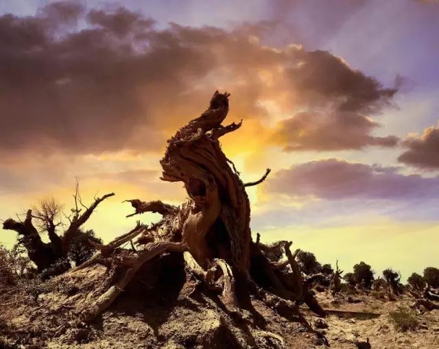 六人合而不抱的大树,四千年不死的树精,六千年不倒的树怪,这就是最独一无二的伊吾胡杨。