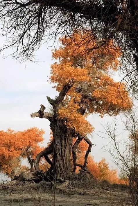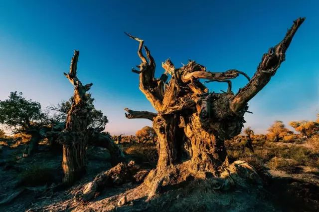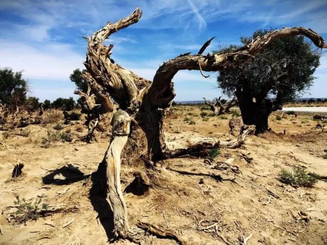 这里的胡杨是地球上树干造型最独特的,树龄最高的,也是离城市最近的。