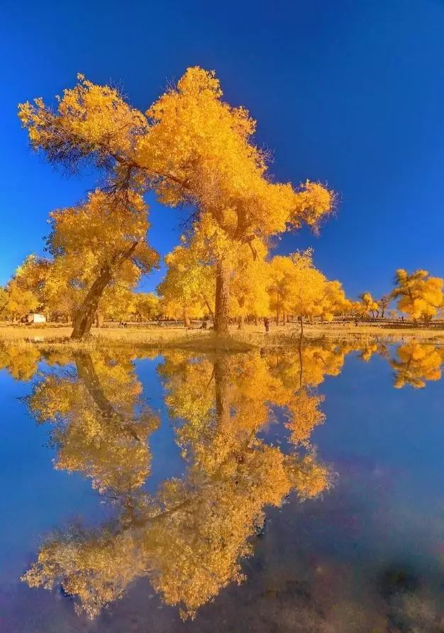 不同于原始胡杨林的苍凉美,这儿的胡杨多了几分灵秀。