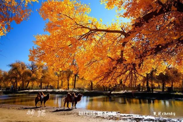 金黄树林,红衣女侠,张艺谋的一部《英雄》,让人们知道了还有额济纳这个美得如此绚烂的地方。