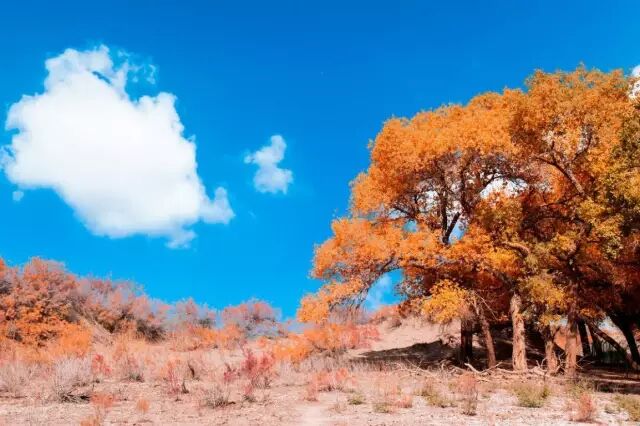 推荐理由:最美大漠红颜,中国最绚烂的胡杨林!