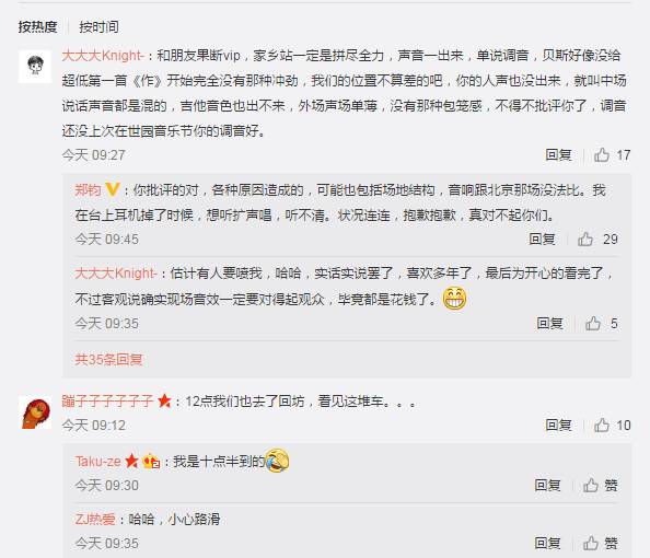 对于歌迷和粉丝对于演唱的意见和批评,郑钧也是虚心接受,非常认真地回复评论: