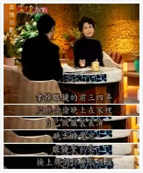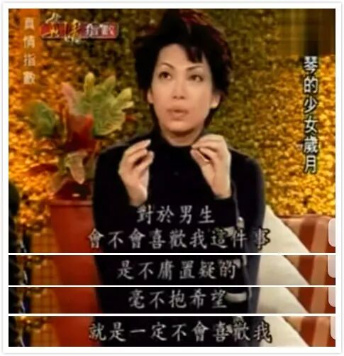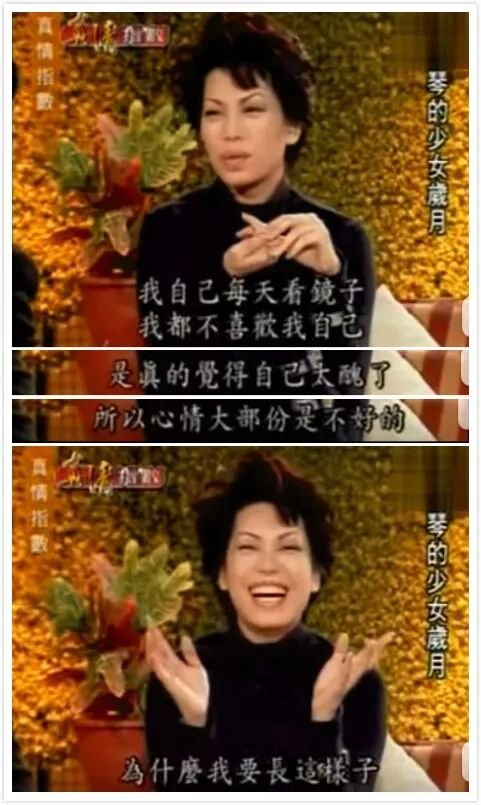 除此以外,决定蔡琴选择的还有很重要的一点,是她骨子里的不自信。九十年代蔡康永做过一档访谈节目叫《真情指数》,蔡琴在这档节目里回忆自己的少女时代,说自己那时候总是照镜子,每次都一边照一边叹气:怎么会这么丑?为什么我要长成这个样子?
