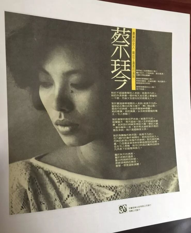 直到1984年的《此情可待》专辑,在摄影师杨立德和飞碟唱片老板彭国华的鼓励下,蔡琴终于摘下了眼镜,做了一个崭新的造型,立刻就让所有人眼前一亮:原来蔡琴还挺漂亮的。那张唱片封面上还有一句宣传语:“最美的女人,唱出了温柔的滋味。”