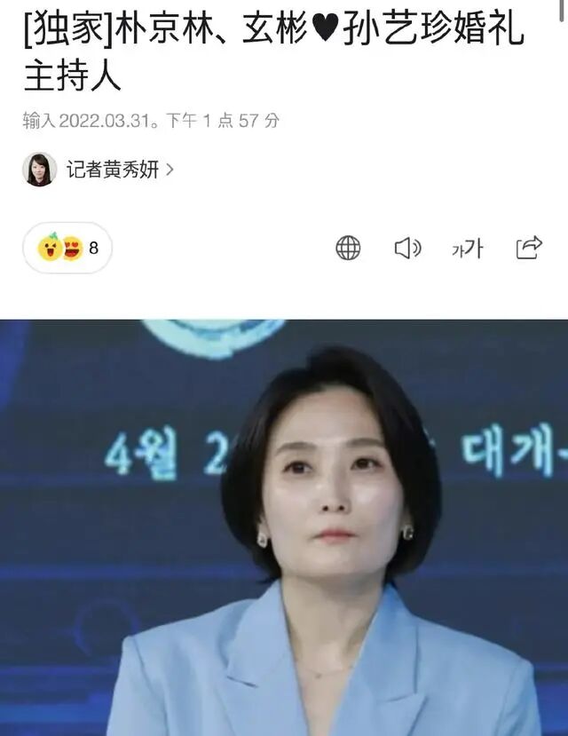 除了祝词由玄彬近20年的好友张东健来担任外,婚礼上的司仪以及演唱祝歌的嘉宾都是由孙艺珍来决定的。