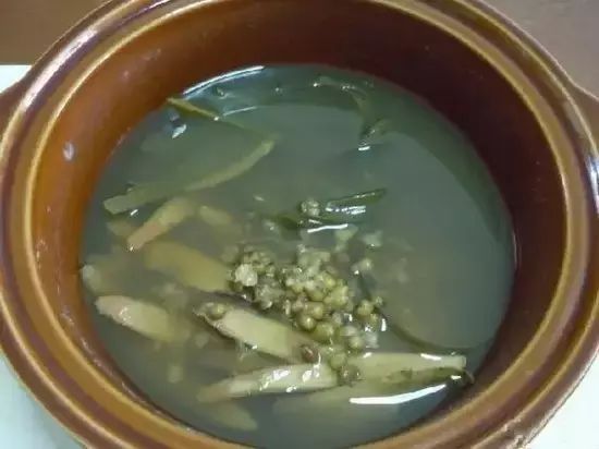 制作方法:绿豆100克,生甘草10克,上两味加水适量,文火煎煮,任意饮用。