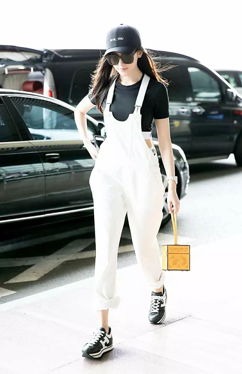 机场扮可爱我们是认真的,一身白色连衣裤搭配黑色运动风短上衣青春十足,棒球帽更添帅气,穿搭品牌2017秋冬经典款黑色H222奢潮运动鞋街头范满满。