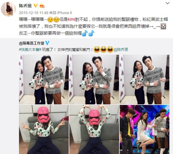 去年,陈乔恩说她把礼物摔坏了