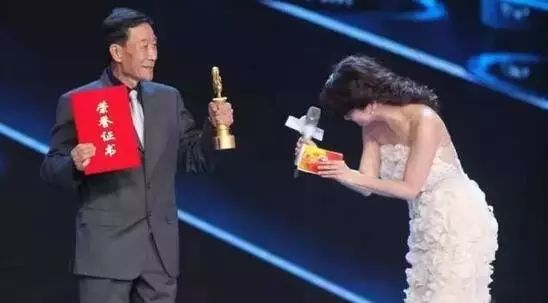 北京国际电影节上,李雪健获奖了。老中青三代演员于蓝、王学圻、江一燕一起为他颁奖。