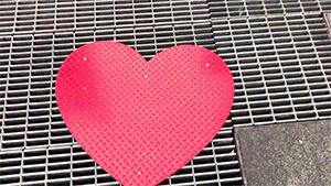 参观者信步踱去最佳观景点,他们的视角不断变化直到这些红粉扑扑的色块最终呈现出一颗 “❤”的标志。